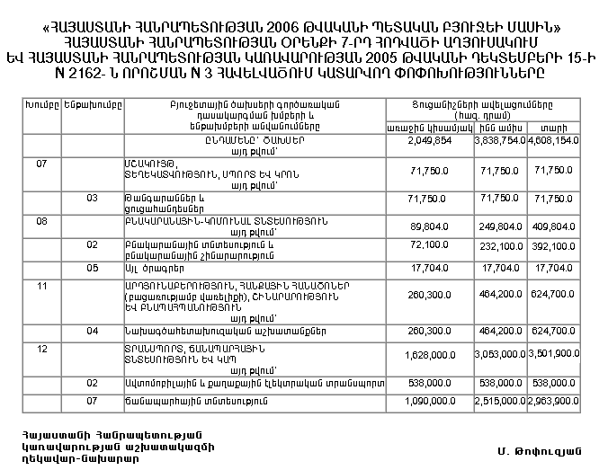 3) Հայաստանի Հանրապետության համայնքների 2006 թվականի բյուջեները կկազմեն՝