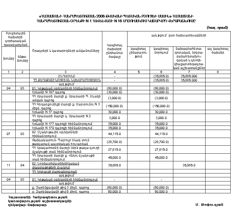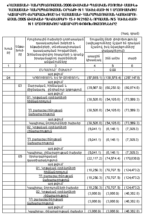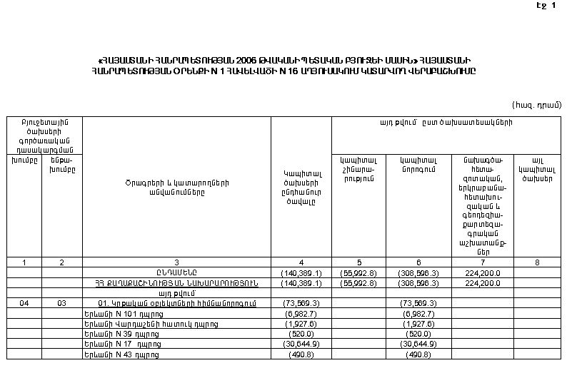 (Հավելվածները փոփ. Հավելված N 1, Հավելված N 1 N 15 աղյուսակ էջ1, 2, Հավելված N 1 N 16 աղյուսակ, Հավելված N 1 26.01.06 N 43-Ն, 26.01.06 N 63-Ն, 09.02.06 N 165-Ն, Հավելված 1 09.03.06 N 236-Ն, Հավելված N 1 հավելվածի N 16 աղյուսակ էջ 1, 2 09.03.06 N 252-Ն, Հավելված N 1, Հավելված N 1 16-րդ աղյուսակ 09.03.06 N 418-Ն, Հավելված N 1, Հավելված N 5 23.09.06 N 398-Ն, Հավելված N 1 23.03.06 N 353-Ն, Հավելված N 1 N 1 աղյուսակ, Հավելված N 1 N 16 աղյուսակ 30.03.06 N 412-Ն, Հավելված N 1 30.03.06 N 427-Ն, Հավելված N 1, N 1 աղյուսակ էջ 1, 2, Հավելված N 1 N 24 աղյուսակ էջ 1, 2, 3 30.03.06 N 485-Ն, Հավելված N 1 06.04.06 N 517-Ն, Հավելված N 1 06.04.06 N 430-Ն, Հավելված N 1 N 1 աղյուսակ էջ 1, 2, 3, Հավելված N 1 N 16 աղյուսակ էջ 1, 2, 3, 4 06.04.06 N 414-Ն, Հավելված N 1 N 1 աղյուսակ էջ 1, 2, Հավելված N 1 N 16 աղյուսակ էջ 1, 2 13.04.06 N 518-Ն, Հավելված N 1 N 16 աղյուսակ 27.04.06 N 662-Ն, Հավելված N 1 27.04.06 N 553-Ն, Հավելված N 1 04.05.06 N 540-Ն, Հավելված N 1 N 16 աղյուսակ 04.05.06 N 541-Ն, Հավելված N 1 N 1 աղյուսակ 04.05.06 N 542-Ն, Հավելված N 1 11.05.06 N 664-Ն)