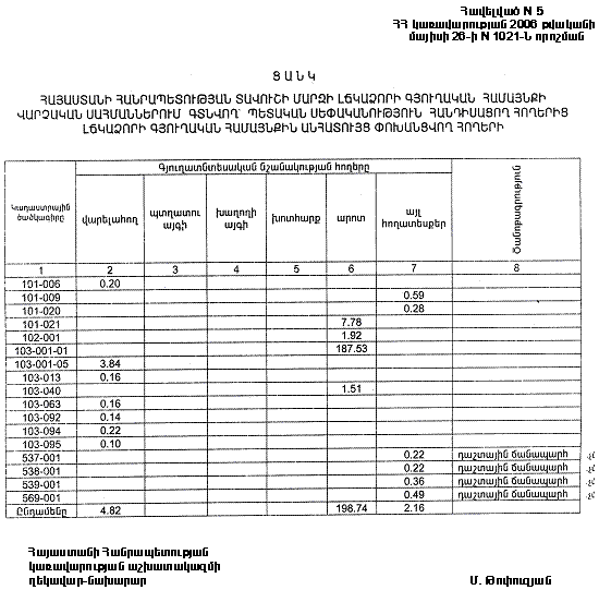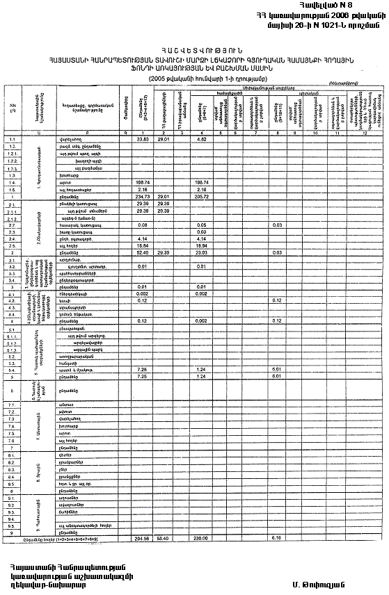 4. Ընդունել ի գիտություն Հայաստանի Հանրապետության Տավուշի մարզի Լճկաձորի գյուղական համայնքի հողային ֆոնդի առկայության և բաշխման մասին հաշվետվությունը՝ 2005 թվականի հունվարի 1-ի դրությամբ՝ համաձայն NN 8 և 9 հավելվածներիի: