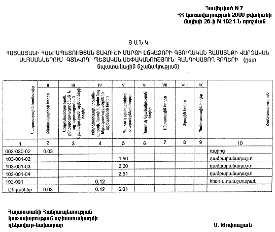 7. Հայաստանի Հանրապետության Տավուշի մարզպետին՝ Հայաստանի Հանրապետության կառավարության 2000 թվականի հոկտեմբերի 23-ի N 656 որոշմամբ սահմանված կարգով՝ սկզբնական հաշվառման տվյալների հիման վրա ապահովել մարզի տարածքում ընթացիկ հաշվառման աշխատանքների իրականացումը: