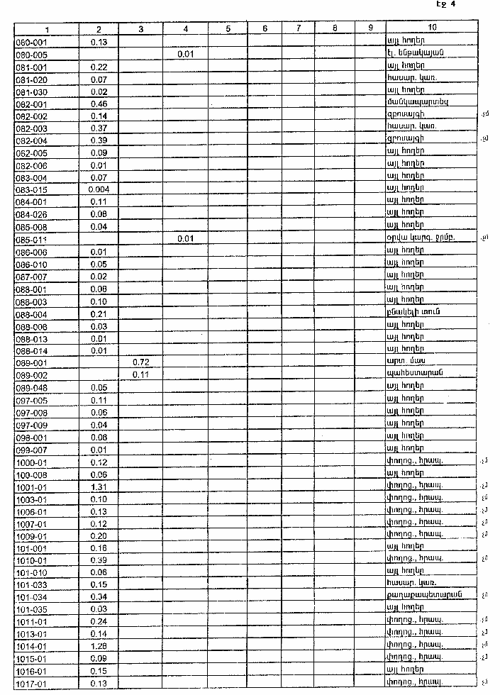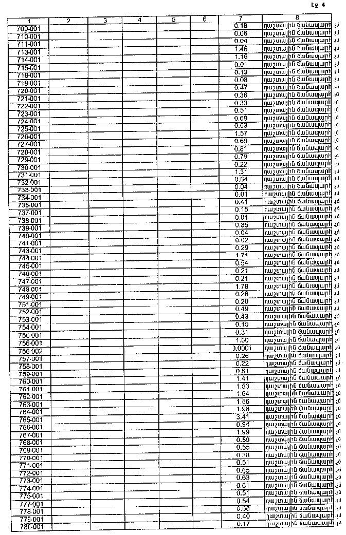 4. Ընդունել ի գիտություն Հայաստանի Հանրապետության Լոռու մարզի Տաշիրի քաղաքային համայնքի հողային ֆոնդի առկայության և բաշխման մասին հաշվետվությունը` 2005 թվականի հունվարի 1-ի դրությամբ` համաձայն N 8 հավելվածի:
