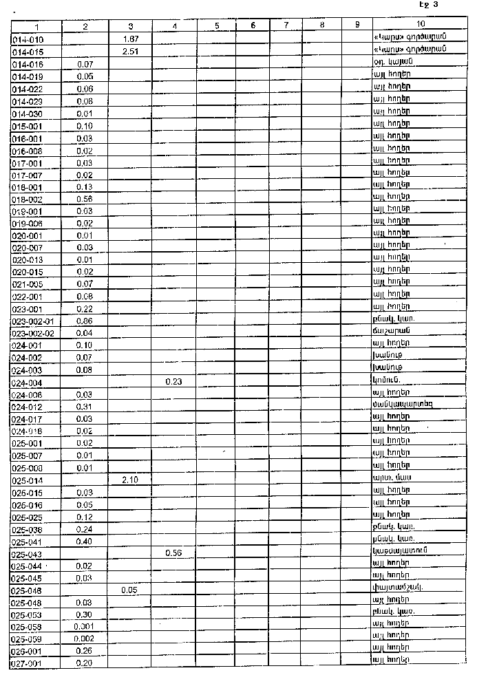 3. Ընդունել ի գիտություն Հայաստանի Հանրապետության Շիրակի մարզի Արթիկի քաղաքային համայնքի հողային ֆոնդի առկայության և բաշխման մասին հաշվետվությունը` 2005 թվականի հունվարի 1-ի դրությամբ` համաձայն N 6 հավելվածի: