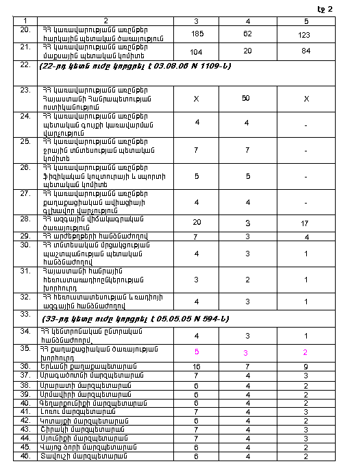 (2-րդ կետը փոփ. 28.04.05 N 512-Ն)