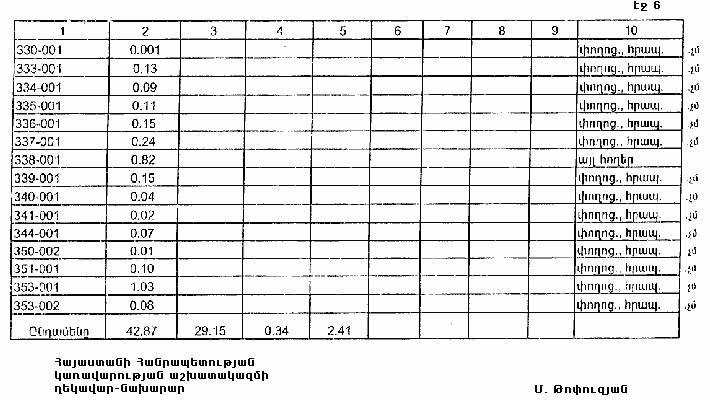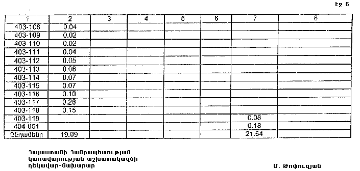 6. Թույլատրել Հայաստանի Հանրապետության կառավարությանն առընթեր անշարժ գույքի կադաստրի պետական կոմիտեի նախագահին Հայաստանի Հանրապետության պետական գեոդեզիական ցանցի հավասարակշռման արդյունքների հիման վրա Հայաստանի Հանրապետության վարչատարածքային միավորների սահմանանիշերի կոորդինատների ժողովածուի հրատարակումից հետո հողային ֆոնդի ընթացիկ հաշվառման ժամանակ Հայաստանի Հանրապետության Տավուշի մարզի Այրումի գյուղական համայնքի հողային հաշվեկշռում սահմանված կարգով կատարել համապատասխան փոփոխություններ: