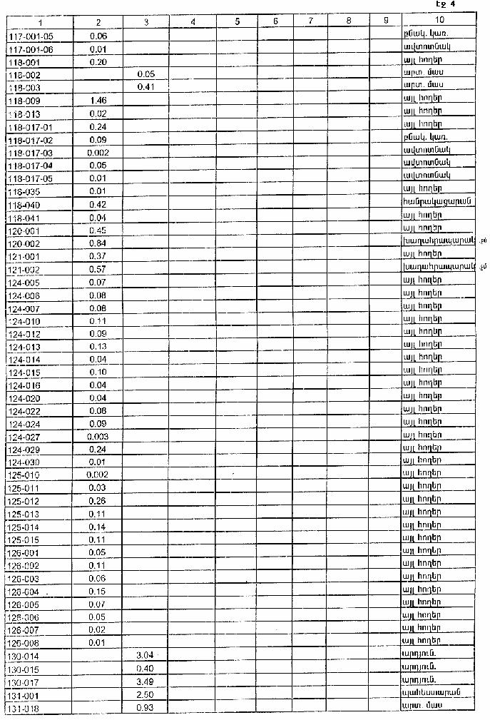4. Ընդունել ի գիտություն Հայաստանի Հանրապետության Տավուշի մարզի Այրումի գյուղական համայնքի հողային ֆոնդի առկայության և բաշխման մասին հաշվետվությունը` 2005 թվականի հունվարի 1-ի դրությամբ` համաձայն NN 8 և 9 հավելվածների: