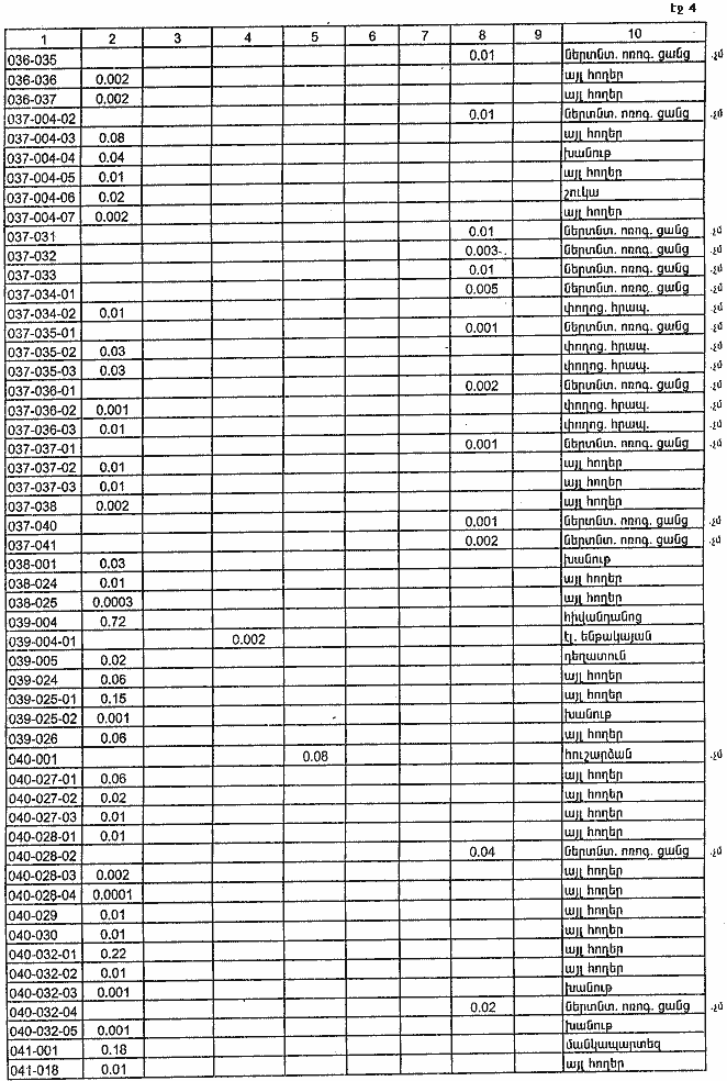 4. Ընդունել ի գիտություն Հայաստանի Հանրապետության Կոտայքի մարզի Գառնիի գյուղական համայնքի հողային ֆոնդի առկայության և բաշխման մասին հաշվետվությունը` 2005 թվականի հունվարի 1-ի դրությամբ` համաձայն NN 8 և 9 հավելվածների: