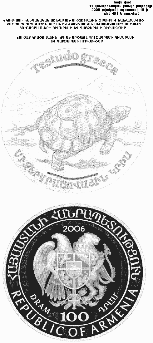 Հիմք ընդունելով «Հայաստանի Հանրապետության կենտրոնական բանկի մասին» Հայաստանի Հանրապետության օրենքի 20-րդ հոդվածի «է» կետը, ինչպես նաև Հայաստանի Հանրապետության կենտրոնական բանկի խորհրդի 2006 թվականի ապրիլի 11-ի «2006-2007 թվականների հուշադրամների թողարկման ծրագիրը և հուշադրամների չափանիշները հաստատելու մասին» թիվ 155-Ն որոշումը` Հայաստանի Հանրապետության կենտրոնական բանկի խորհուրդը որոշում է.