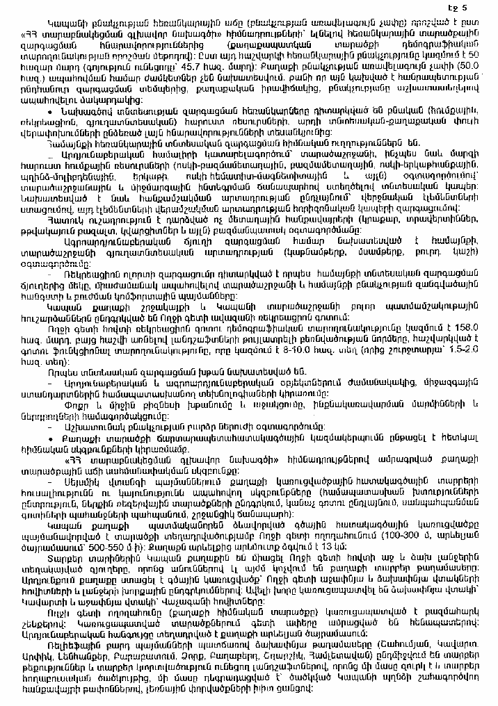 3. Հանձնարարել Հայաստանի Հանրապետության պետական կառավարման մարմիններին և առաջարկել Կապանի քաղաքային համայնքի ղեկավարին՝ ճյուղային և համայնքային զարգացման ծրագրերում սահմանված կարգով ներառել գլխավոր հատակագծի իրականացման միջոցառումները` ըստ առաջնահերթության: