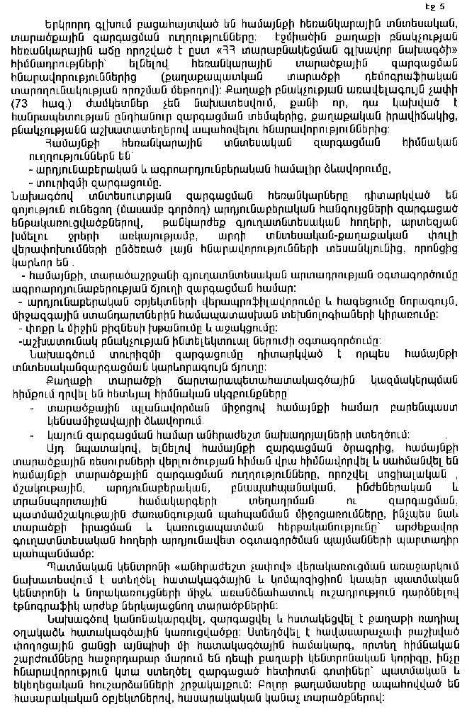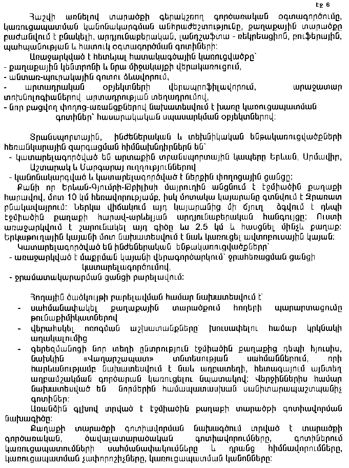 3. Հանձնարարել Հայաստանի Հանրապետության պետական կառավարման մարմիններին և առաջարկել Էջմիածնի քաղաքային համայնքի ղեկավարին՝ ճյուղային և համայնքային զարգացման ծրագրերում սահմանված կարգով ներառել գլխավոր հատակագծի իրականացման միջոցառումները` ըստ առաջնահերթության:
