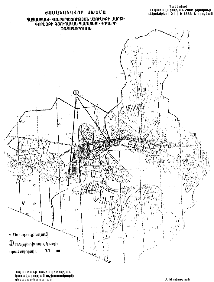 1. Հայաստանի Հանրապետության կառավարության 2004 թվականի հուլիսի 15-ի N 1006-Ն որոշմամբ հաստատված` Հայաստանի Հանրապետության Սյունիքի մարզի Գորայքի գյուղական համայնքի հողերի օգտագործման ժամանակավոր սխեմայում` համաձայն հավելվածի, համայնքային սեփականություն հանդիսացող գյուղատնտեսական նշանակության 0.3 հեկտար այլ հողեր փոխադրել էներգետիկայի, կապի, տրանսպորտի և կոմունալ ենթակառուցվածքների օբյեկտների հողերի կատեգորիա՝ հիդրոէլեկտրակայանի և օժանդակ կառույցների շինարարության համար: