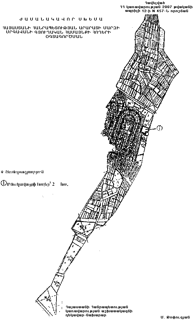 Հայաստանի Հանրապետության կառավարության 2002 թվականի օգոստոսի 1-ի N 1133-Ն որոշմամբ հաստատված` Հայաստանի Հանրապետության Արարատի մարզի Մրգավանի գյուղական համայնքի հողերի օգտագործման ժամանակավոր սխեմայում` համաձայն հավելվածի, համայնքային սեփականություն հանդիսացող գյուղատնտեսական նշանակության հողերից 2 հեկտար վարելահողը փոխադրել բնակավայրերի հողերի կատեգորիա` բնակելի կառուցապատման համար: