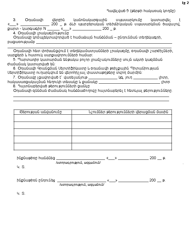 գ) օդանավի թռիչքային պիտանիության որոշման և տեխնիկական վիճակի ստուգման ակտի (Հավելված 4):