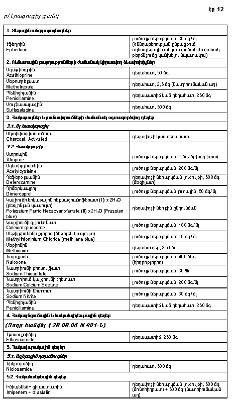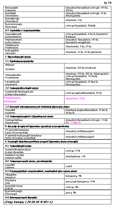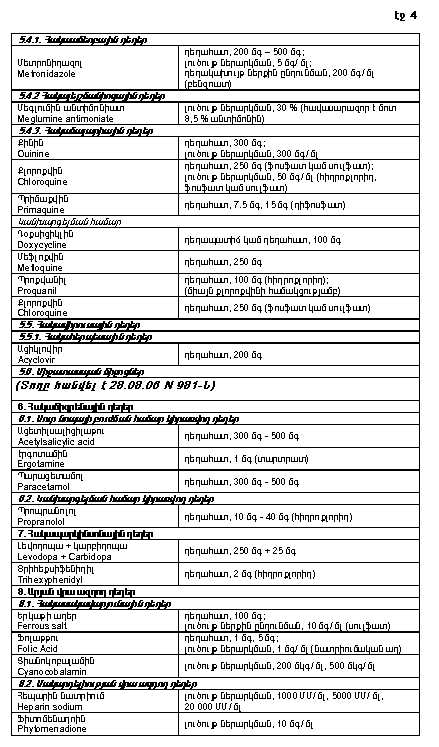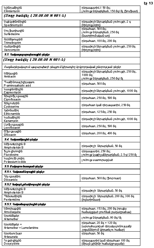 (ցանկը լրաց. 28.04.05 N 406-Ն, 20.07.05 N 683-Ն, 16.03.06 N 261-Ն, փոփ., լրաց. 28.08.06 N 981-Ն)