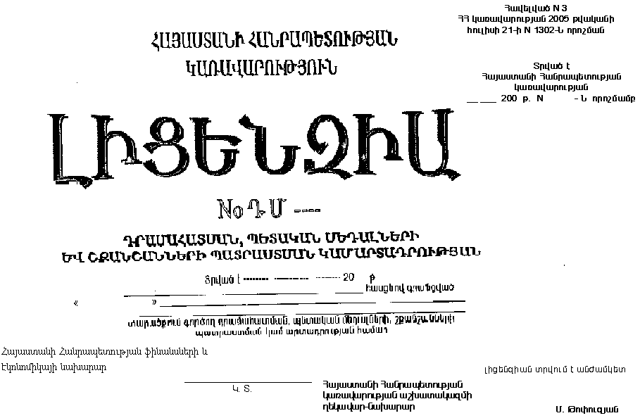 (Լիցենզիան փոփ. 04.10.07 N 1134-Ն)