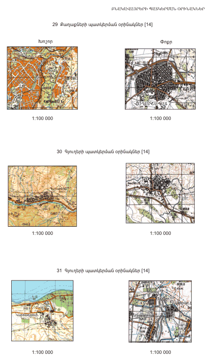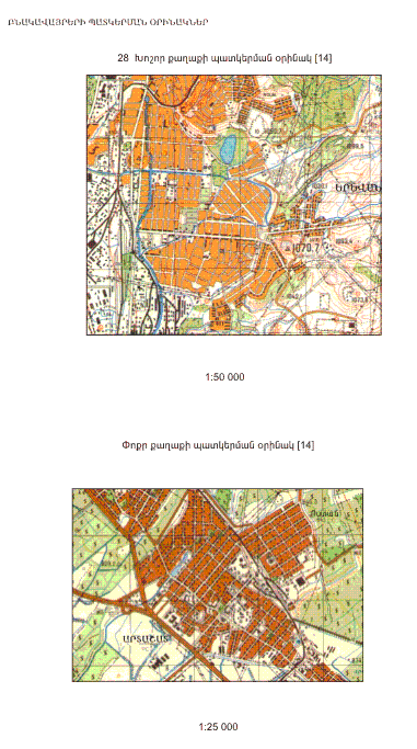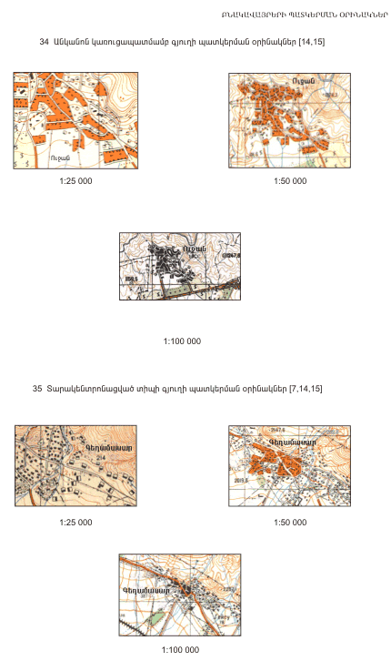 24. (25-35) Աղյուսակներում բերված են տարբեր մասշտաբներում տարբեր տիպի բնակավայրերի պատկերման օրինակներ: