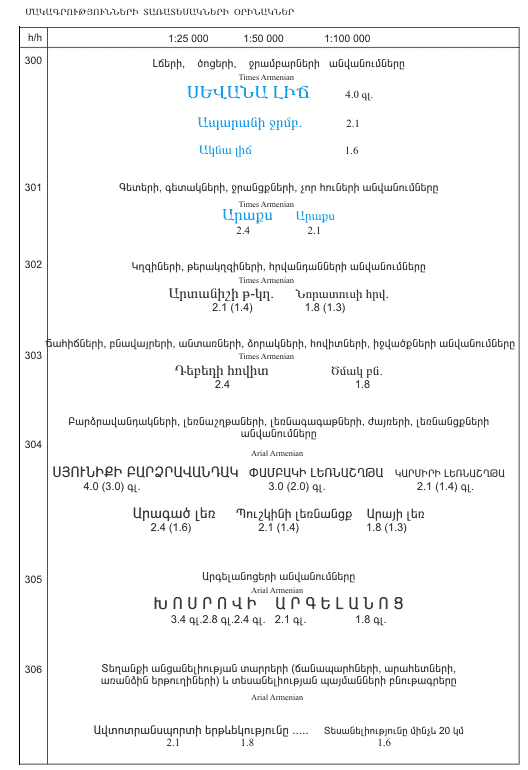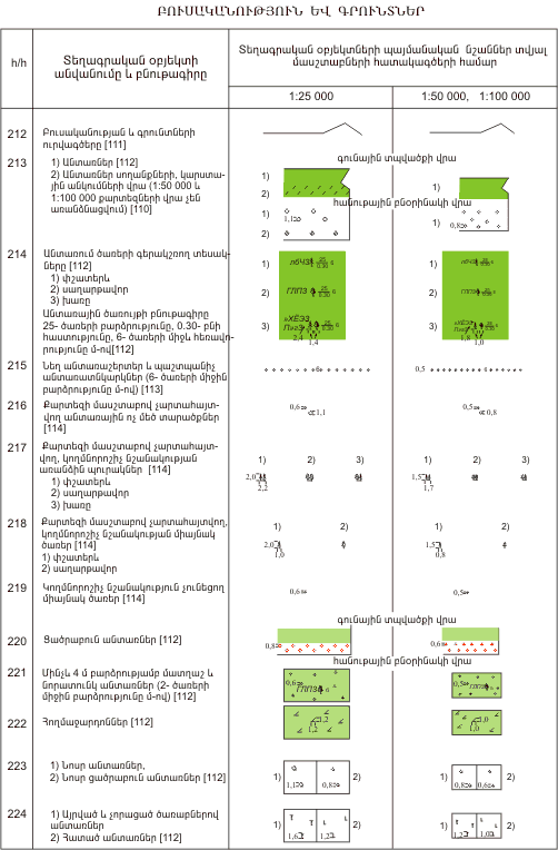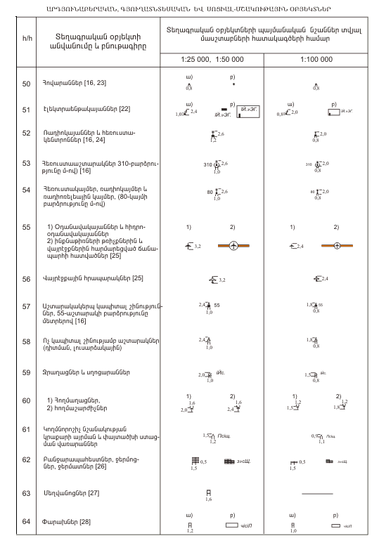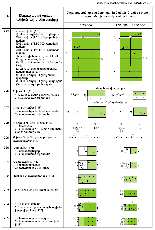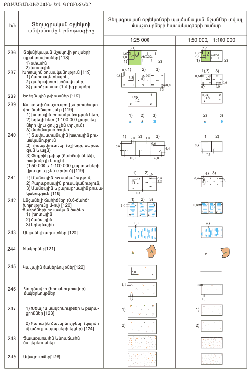 1:25 000, 1:50 000, 1:100 000 ՄԱՍՇՏԱԲՆԵՐԻ ՏԵՂԱԳՐԱԿԱՆ ՔԱՐՏԵԶՆԵՐԻ ՊԱՅՄԱՆԱԿԱՆ ՆՇԱՆՆԵՐԻ