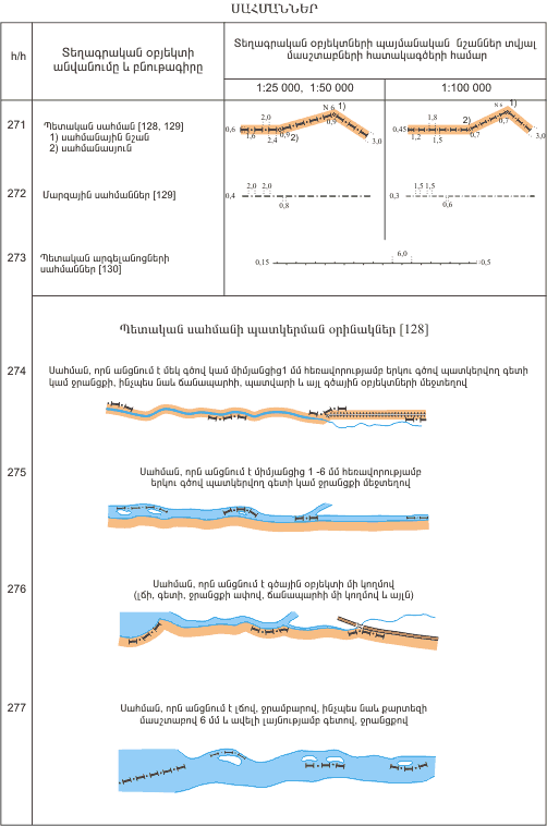 139. (271, 272, 274-277) Պետական սահմանը պատկերելիս պահպանվում են հետևյալ դրույթները.