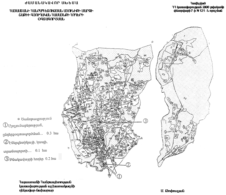 1) 0.2 հեկտար այլ հողերը` բնակավայրերի հողերի կատեգորիա` հասարակական կառուցապատման համար.