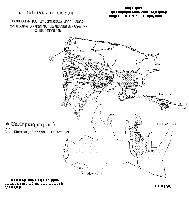 1. Հայաստանի Հանրապետության կառավարության 2002 թվականի օգոստոսի 15-ի N 1224-Ն որոշմամբ հաստատված` Հայաստանի Հանրապետության Լոռու մարզի Ֆիոլետովոյի գյուղական համայնքի հողերի օգտագործման ժամանակավոր սխեմայում` համաձայն հավելվածի, համայնքային սեփականություն հանդիսացող գյուղատնտեսական նշանակության հողերից 16.925 հեկտարը, այդ թվում` 0.625 հեկտար վարելահողը, 13 հեկտար խոտհարքը և 3.3 հեկտար արոտավայրը փոխադրել անտառային հողերի կատեգորիա` անտառատնկման համար: