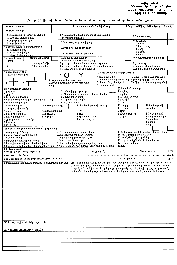 ՆՅՈՒԹԱԿԱՆ ՎՆԱՍՈՎ ճանապարհատրանսպորտային պատահարի հաշվառման քարտ