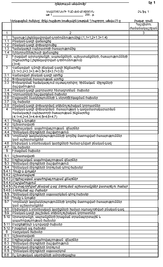 1. Հաստատել բնական գազի հաղորդման (փոխադրման) ու բաշխման, բնական գազի համակարգի օպերատորի ծառայության մատուցման, բնական գազի ներկրման լիցենզիա ունեցող անձանց կողմից ներկայացվող ֆինանսական հաշվետվության NN ֆգ1, ֆգ2, ֆգ3, ֆգ4, ֆգ5, ֆգ6, ֆգ7 ձևերը (հավելվածները կցվում են):
