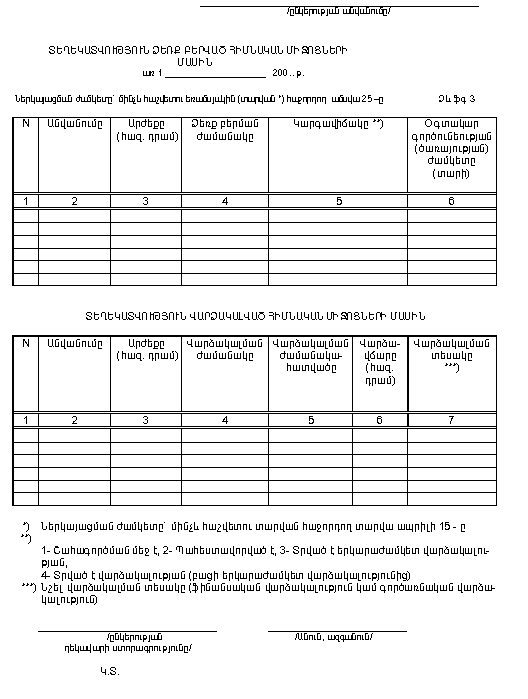 ՏԵՂԵԿԱՏՎՈՒԹՅՈՒՆ ՁԵՌՔ ԲԵՐՎԱԾ ՀԻՄՆԱԿԱՆ ՄԻՋՈՑՆԵՐԻ