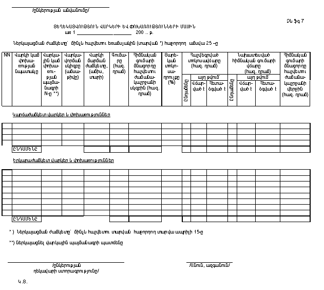 ԳԱԶԱՄԱՏԱԿԱՐԱՐՄԱՆ ՀԱՄԱԿԱՐԳԻ ԼԻՑԵՆԶԱՎՈՐՎԱԾ ԱՆՁԱՆՑ ՖԻՆԱՆՍԱԿԱՆ ՀԱՇՎԵՏՎՈՒԹՅԱՆ ՁԵՎԵՐԸ ՀԱՍՏԱՏԵԼՈՒ ԵՎ ՀԱՅԱՍՏԱՆԻ ՀԱՆՐԱՊԵՏՈՒԹՅԱՆ ԷՆԵՐԳԵՏԻԿԱՅԻ ՀԱՆՁՆԱԺՈՂՈՎԻ 2000 ԹՎԱԿԱՆԻ ՄԱՐՏԻ 24-Ի N 7 ՈՐՈՇՄԱՆ ՄԵՋ ԼՐԱՑՈՒՄ ԿԱՏԱՐԵԼՈՒ ՄԱՍԻՆ