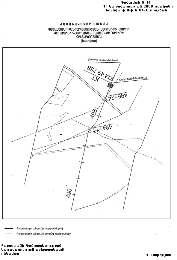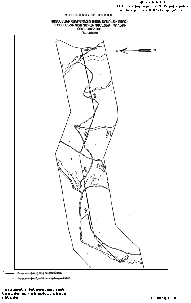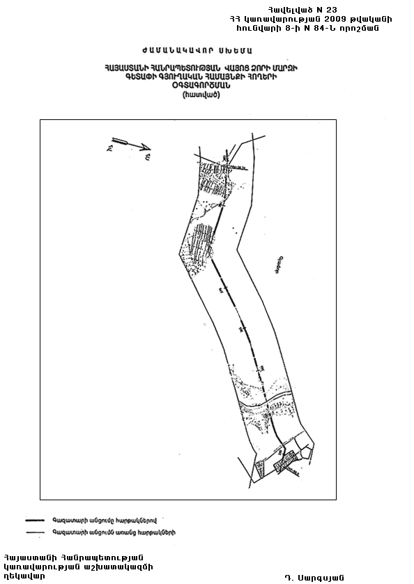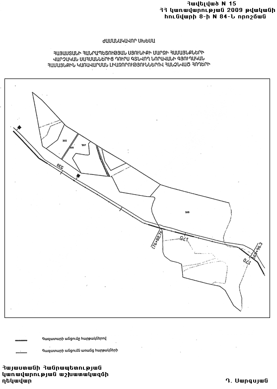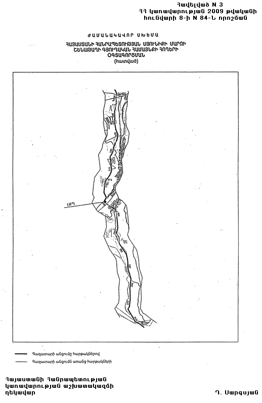 2. Իրան-Հայաստան գազամուղի Քաջարան-Արարատ հատվածի կառուցման ծրագրի իրականացման նպատակով Հայաստանի Հանրապետության Սյունիքի մարզի վարչական սահմաններում գտնվող` 73.8445 հեկտար, Վայոց ձորի մարզի 45.064 հեկտար և Արարատի մարզի 20.8271 հեկտար` տարբեր նպատակային նշանակության հողերը փոխադրել էներգետիկայի, տրանսպորտի, կապի, կոմունալ ենթակառուցվածքների օբյեկտների հողերի կատեգորիա, այդ թվում`