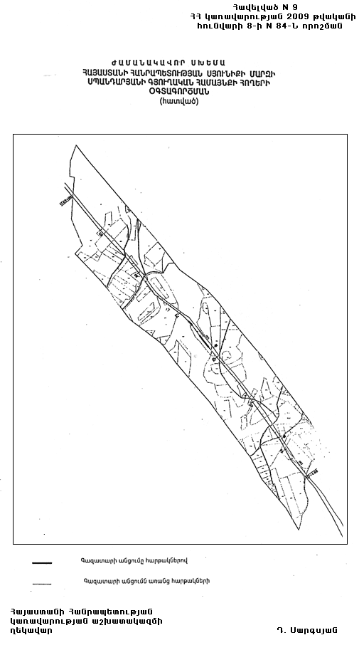 9) Սյունիքի մարզի Սպանդարյանի գյուղական համայնքի վարչական սահմաններում գտնվող հողերից` 0.1916 հեկտարը` համաձայն N 9 հավելվածի, այդ թվում`