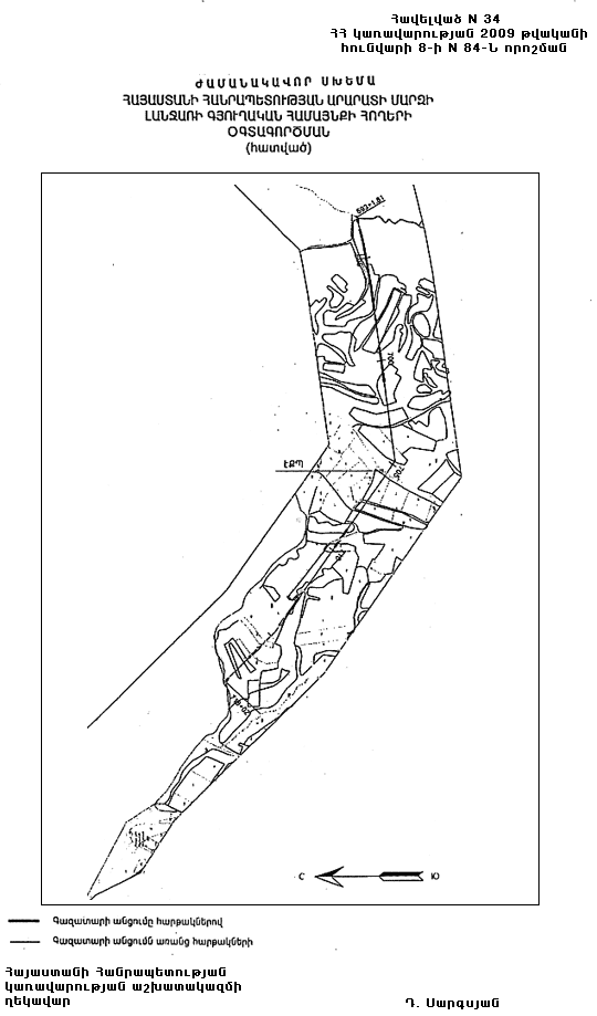 34) Արարատի մարզի Լանջառի գյուղական համայնքի վարչական սահմաններում գտնվող հողերից` 1.1174 հեկտարը` համաձայն N 34 հավելվածի, այդ թվում`