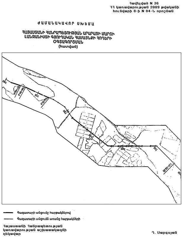 36) Արարատի մարզի Լանջանիստի գյուղական համայնքի վարչական սահմաններում գտնվող հողերից` 1.845 հեկտարը` համաձայն N 36 հավելվածի, այդ թվում`