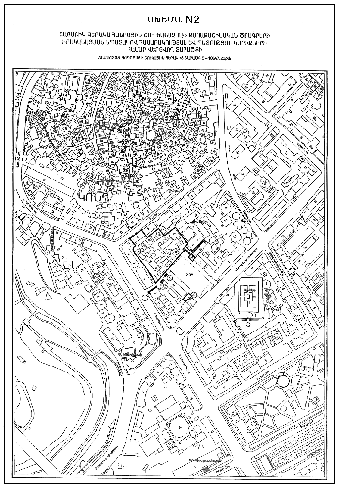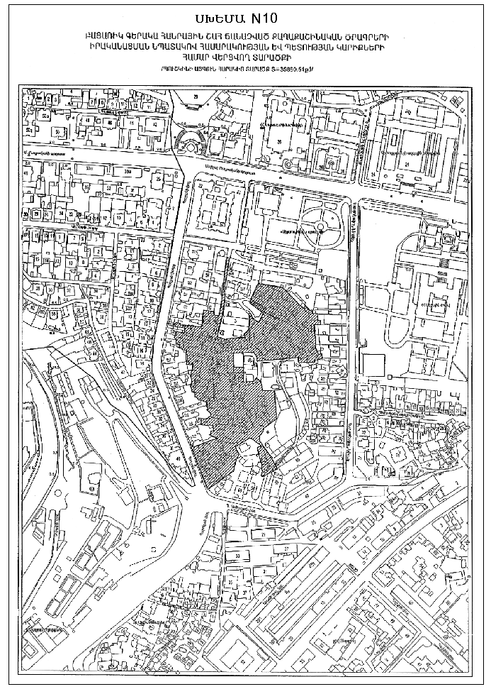 բ. անհնար է ապահովել տարածքների բնականոն երթևեկություն, ջրամատակարարում, ջրահեռացում և քաղաքի համար կենսական նշանակություն ունեցող այլ պայմաններ, որոնք նախատեսված են Երևան քաղաքի գլխավոր հատակագծով, տարածքներում առկա են մեծ քանակությամբ հանրապետական և տեղական նշանակության հուշարձան շենքեր, շինություններ, որոնք այժմ գտնվում են անմխիթար վիճակում: Կառուցապատման աշխատանքները թույլ կտան մասնավոր ներդրումների հաշվին վերակառուցել այդ շենքերն ու շինությունները` համադրելով հին Երևանի ճարտարապետական ոճն այժմյան կառուցվող շենքերի, շինությունների հետ, տարածքներում արդեն իսկ մասնակիորեն կատարված են սեփականության իրացման աշխատանքներ: