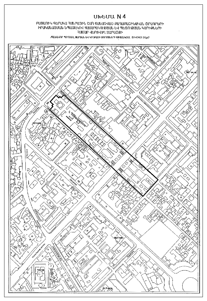 Գլխավոր պողոտայի Մ. Սարյան, Արամի, Ե. Կողբացու և Փ. Բուզանդի փողոցների միջակայքում գտնվող տարածք (N 4 սխեման կցվում է) |