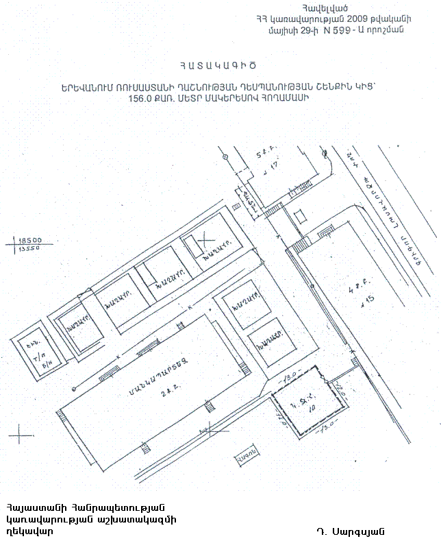 ԵՐԵՎԱՆՈՒՄ ՌՈՒՍԱՍՏԱՆԻ ԴԱՇՆՈՒԹՅԱՆ ԴԵՍՊԱՆՈՒԹՅԱՆ ՇԵՆՔԻՆ ԿԻՑ` 156.0 ՔԱՌ. ՄԵՏՐ ՄԱԿԵՐԵՍՈՎ ՀՈՂԱՄԱՍԻ