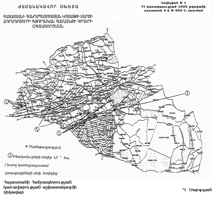 1) 1.5 հեկտարը` բնակավայրերի հողերի կատեգորիա` խառը կառուցապատման համար.
