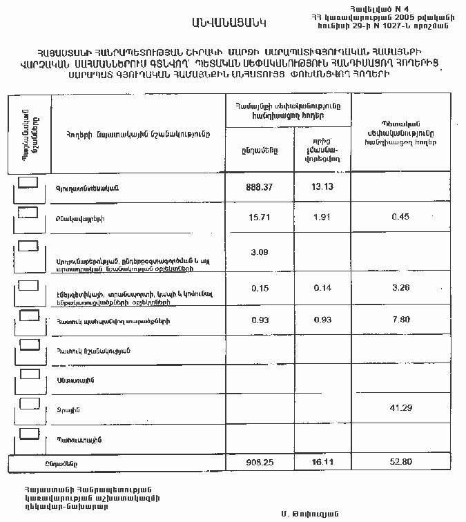 (հավելվածն ուժը կորցրել է 03.12.09 N 1418-Ն)