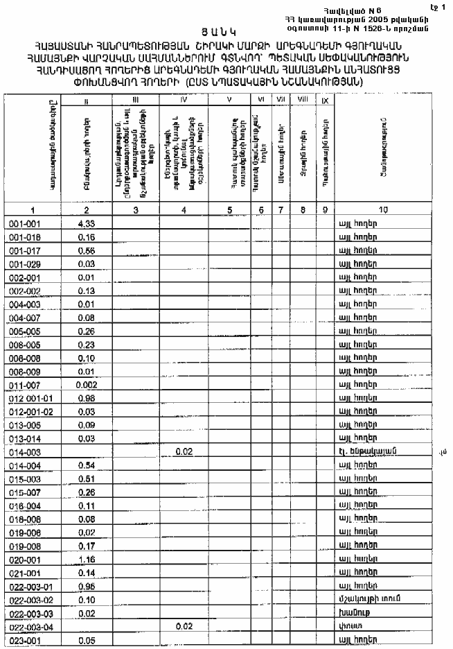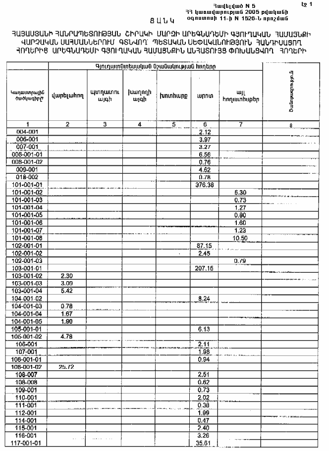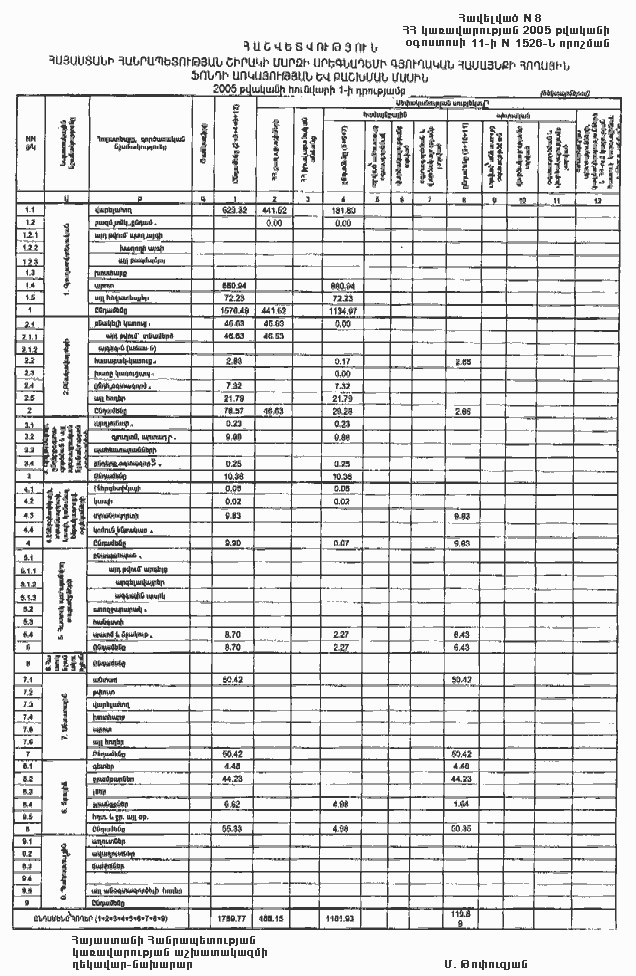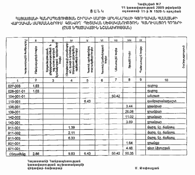 11 օգոստոսի 2005 թվականի N 1526-Ն