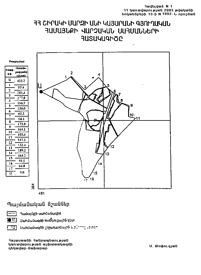 ՀԱՅԱՍՏԱՆԻ ՀԱՆՐԱՊԵՏՈՒԹՅԱՆ ՇԻՐԱԿԻ ՄԱՐԶԻ ԱՆԻ ԿԱՅԱՐԱՆԻ ԳՅՈՒՂԱԿԱՆ ՀԱՄԱՅՆՔԻ ՎԱՐՉԱԿԱՆ ՍԱՀՄԱՆՆԵՐԻ ՆԿԱՐԱԳՐՈՒԹՅՈՒՆԸ (հավելվածն ուժը կորցրել է 03.12.09 N 1418-Ն)