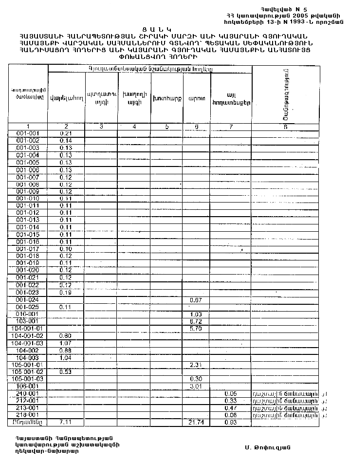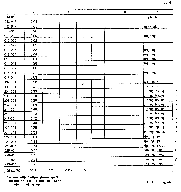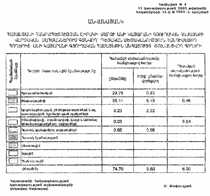 4. Ընդունել ի գիտություն Հայաստանի Հանրապետության Շիրակի մարզի Անի կայարանի գյուղական համայնքի հողային ֆոնդի առկայության և բաշխման մասին հաշվետվությունը` 2005 թվականի հունվարի 1-ի դրությամբ` համաձայն N 8 հավելվածի: