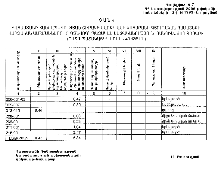 բ) Հայաստանի Հանրապետության Շիրակի մարզի Անի կայարանի գյուղական համայնքի վարչական սահմաններում գտնվող հողերից 6.3 հեկտարը համարվում է պետական սեփականություն՝ համաձայն N 7 հավելվածի: