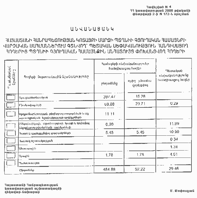 4. Ընդունել ի գիտություն Հայաստանի Հանրապետության Կոտայքի մարզի Պտղնիի գյուղական համայնքի հողային ֆոնդի առկայության և բաշխման մասին հաշվետվությունը` 2005 թվականի հունվարի 1-ի դրությամբ` համաձայն NN 8 և 9 հավելվածների: