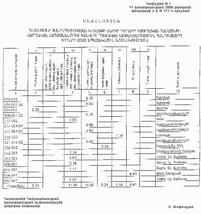 7. Հայաստանի Հանրապետության Կոտայքի մարզպետին` Հայաստանի Հանրապետության կառավարության 2000 թվականի հոկտեմբերի 23-ի N 656 որոշմամբ սահմանված կարգով` սկզբնական հաշվառման տվյալների հիման վրա ապահովել մարզի տարածքում ընթացիկ հաշվառման աշխատանքների իրականացումը: