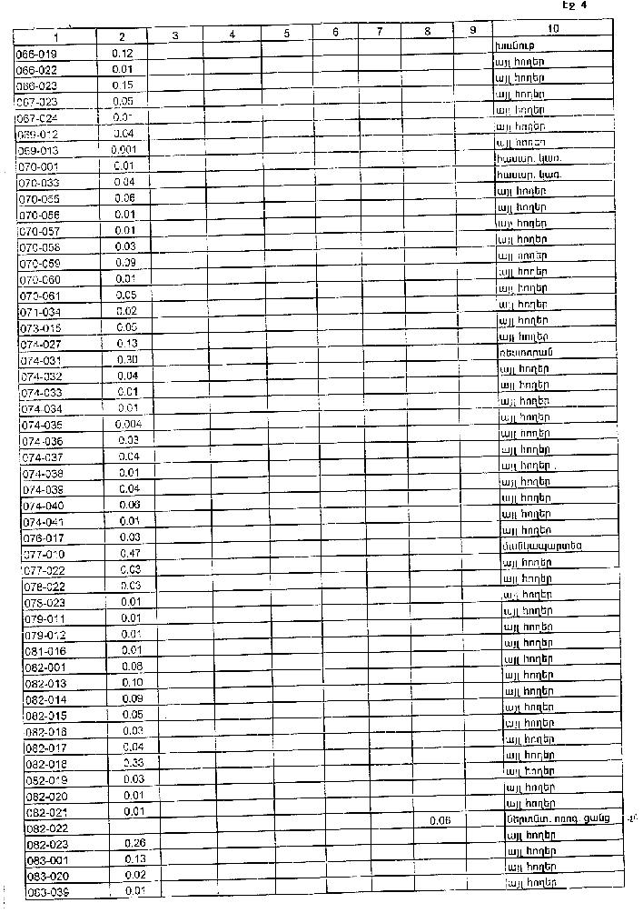 4. Ընդունել ի գիտություն Հայաստանի Հանրապետության Կոտայքի մարզի Եղվարդի քաղաքային համայնքի հողային ֆոնդի առկայության և բաշխման մասին հաշվետվությունը` 2005 թվականի հունվարի 1-ի դրությամբ` համաձայն NN 8 և 9 հավելվածների: