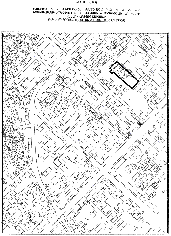 | 21. | Հանրապետության նրբ., տուն 3, Հանրապետության նրբ., տուն 5, Հանրապետության նրբ., տուն 7, Հանրապետության նրբ., տուն 9, Հանրապետության փող., տուն 38 (N 21 սխեման կցվում է) | «Եվրոպա հյուրանոց» ՓԲԸ | 9 ամիս |