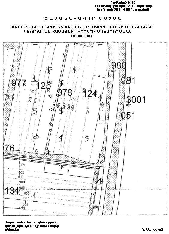 13) Հայաստանի Հանրապետության Արմավիրի մարզի Արտաշարի գյուղական համայնքի վարչական սահմաններում գտնվող` համայնքային սեփականություն հանդիսացող` գյուղատնտեսական նշանակության այլ հողերից 0.1002 հեկտար` համաձայն N 14 հավելվածի։