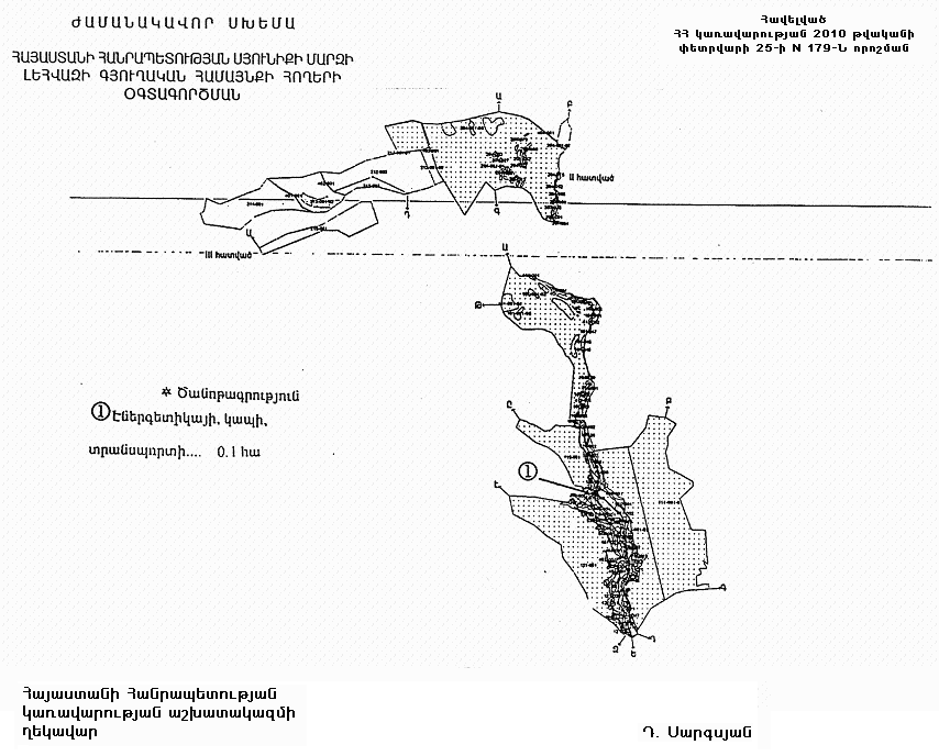 1. Հայաստանի Հանրապետության կառավարության 2002 թվականի հուլիսի 4-ի N 944-Ն որոշմամբ հաստատված` Հայաստանի Հանրապետության Սյունիքի մարզի Լեհվազի գյուղական համայնքի հողերի օգտագործման ժամանակավոր սխեմայում` համաձայն հավելվածի, համայնքային սեփականություն հանդիսացող` գյուղատնտեսական նշանակության 0.1 հեկտար այլ հողեր փոխադրել էներգետիկայի, կապի, տրանսպորտի, կոմունալ ենթակառուցվածքների օբյեկտների հողերի կատեգորիա` փոքր հիդրոէլեկտրակայանի և օժանդակ կառույցների շինարարության համար: