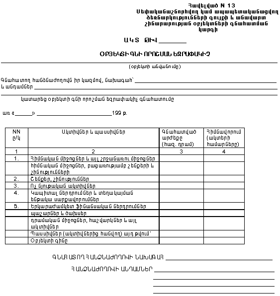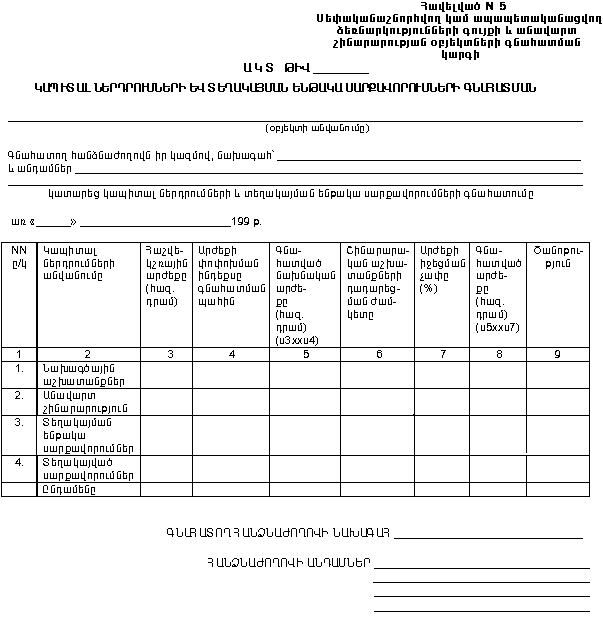 ԿԱՊԻՏԱԼ ՆԵՐԴՐՈՒՄՆԵՐԻ ԵՎ ՏԵՂԱԿԱՅՄԱՆ ԵՆԹԱԿԱ ՍԱՐՔԱՎՈՐՈՒՄՆԵՐԻ ԳՆԱՀԱՏՄԱՆ | |