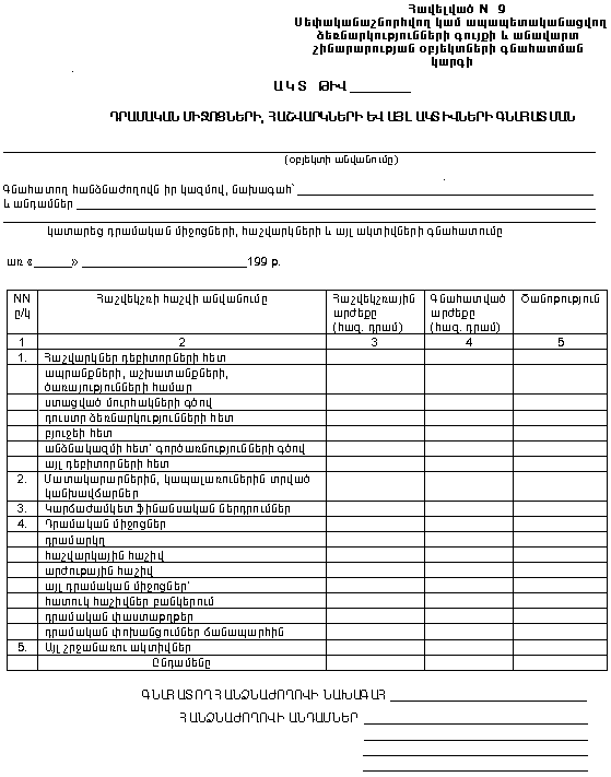ԴՐԱՄԱԿԱՆ ՄԻՋՈՑՆԵՐԻ, ՀԱՇՎԱՐԿՆԵՐԻ ԵՎ ԱՅԼ ԱԿՏԻՎՆԵՐԻ ԳՆԱՀԱՏՄԱՆ | |