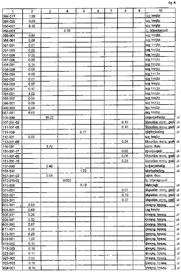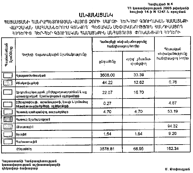 4. Ընդունել ի գիտություն Հայաստանի Հանրապետության Վայոց ձորի մարզի Հերհերի գյուղական համայնքի հողային ֆոնդի առկայության և բաշխման մասին հաշվետվությունը՝ 2005 թվականի հունվարի 1-ի դրությամբ՝ համաձայն NN 8 և 9 հավելվածների: