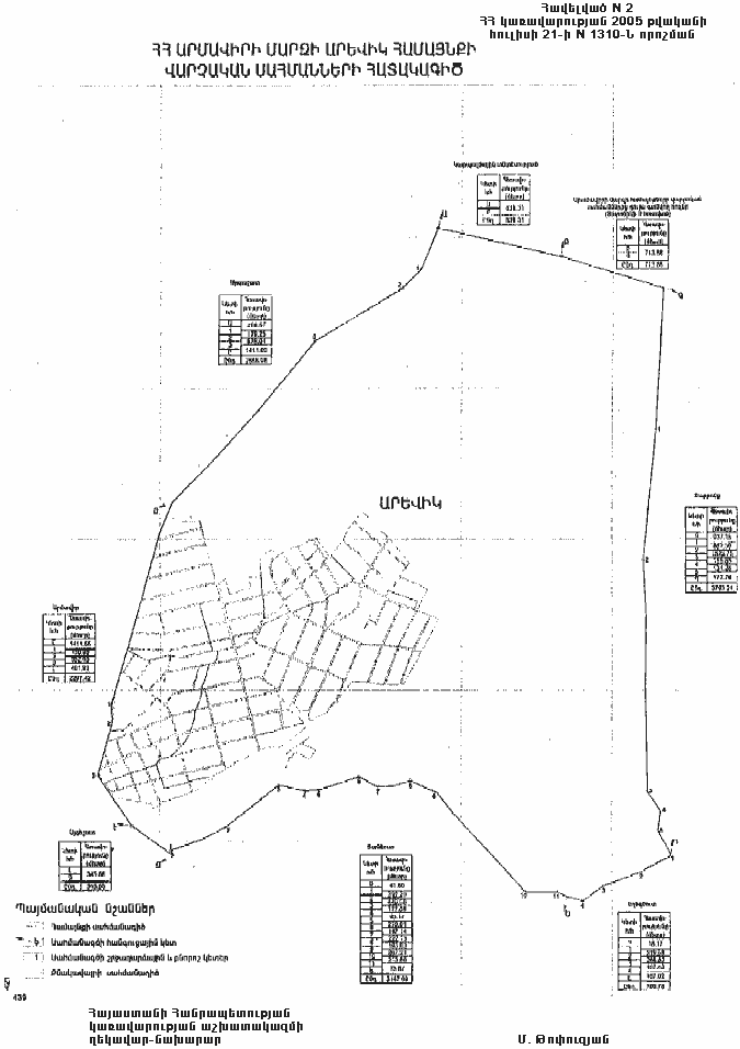 2) Արևիկի գյուղական համայնքի վարչական սահմանների նկարագիրը` համաձայն NN 2 և 21 հավելվածների,